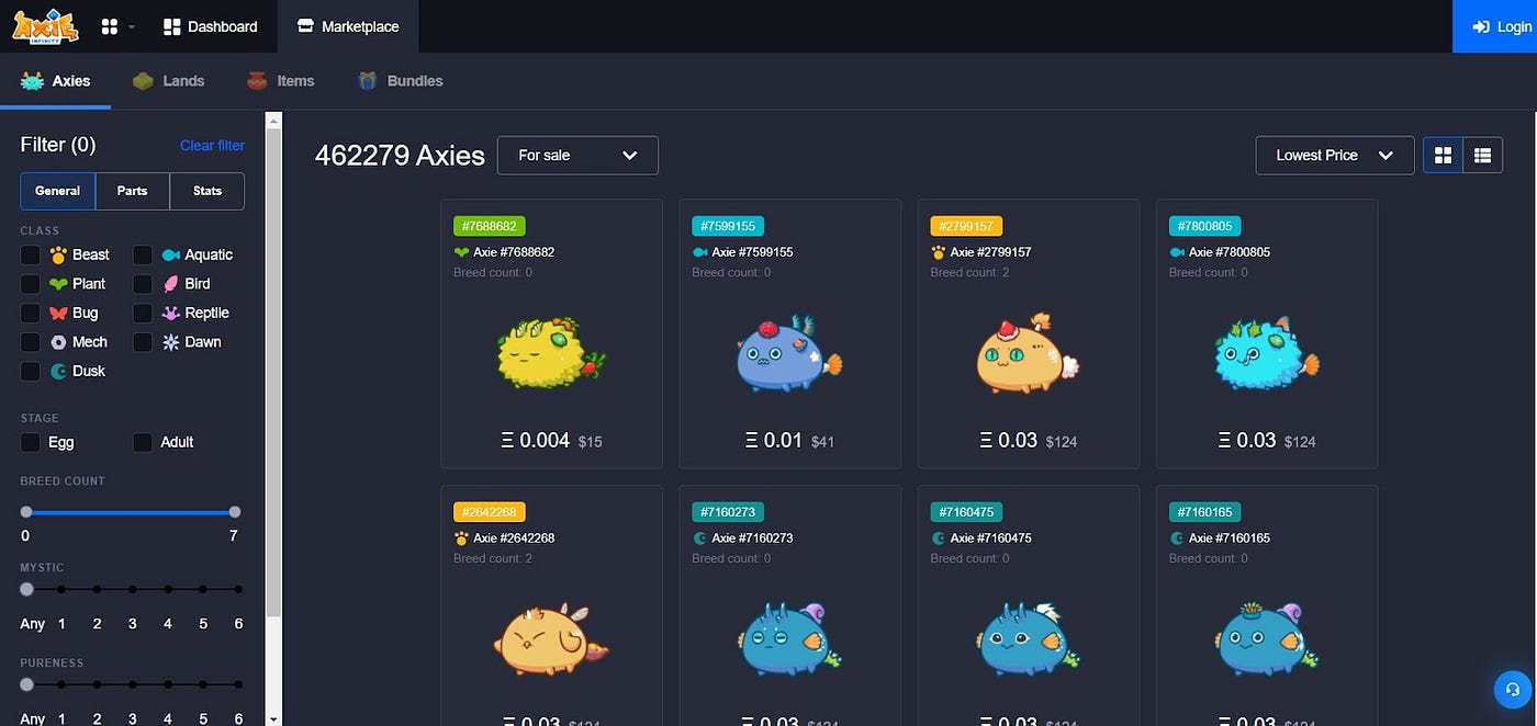 Axie infinity is a turn-based crypto game that features cute little creatures, called Axies, that love to battle. These Axies are NFTs that players can collect, breed, raise, and trade on the game’s official marketplace.