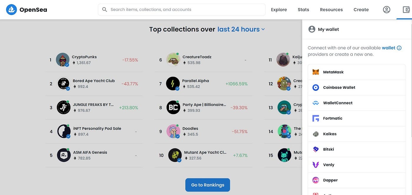 If you scroll further down, you’ll come across the “Top Collections’’ section that shows the most traded collections over adjustable periods, which is useful for investors looking for blue-chip collections.