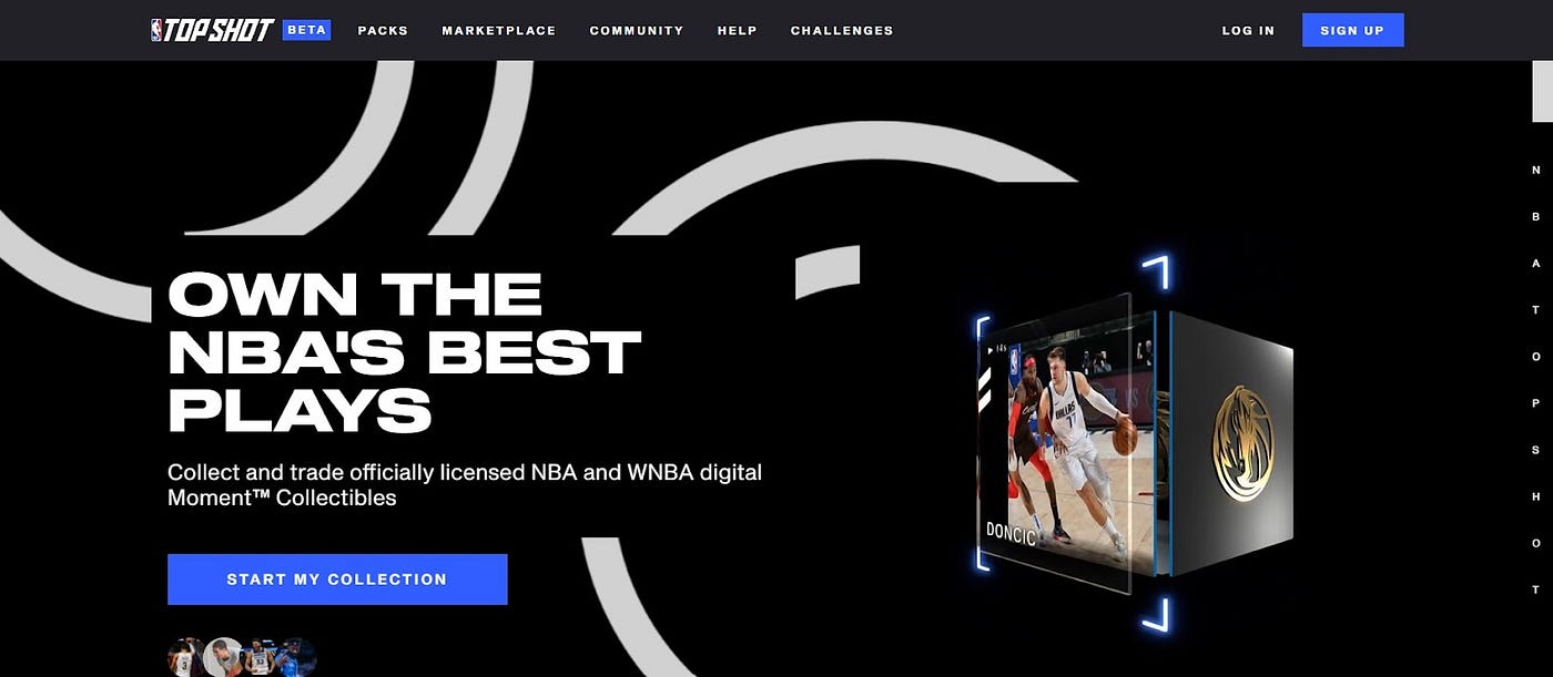 NBA Top Shot from Dapper Labs is a sports-focused platform for trading Basketball game moments/highlights as NFTs on the Flow blockchain. NBA fans can buy highlights from their favorite players, collect them, and trade them on the platform’s marketplace.